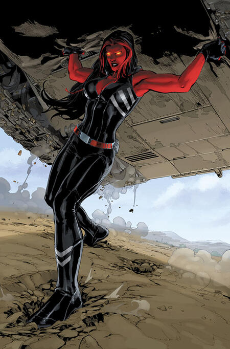 Red Hulk's team of mercenaries Code Red found Domino in a bar located in the heart of Hell's Kitchen. However Domino had been waiting for them and ambushed Code Red with X-Force. All the various team members paired off and began their individual battles with Wolverine facing Red Hulk. Wolverine slashed his claws across Red Hulk's eyes blinding him until his healing factor restored his eyesight. Wolverine was about to deliver the killing blow to Red Hulk and Red She-Hulk appeared blindsiding him. Red She-Hulk protected Red Hulk long enough in challenging Wolverine.