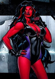 A mysterious female version of Red Hulk first appeared when the Red Hulk had gathered a team of mercenaries to hunt down Domino.